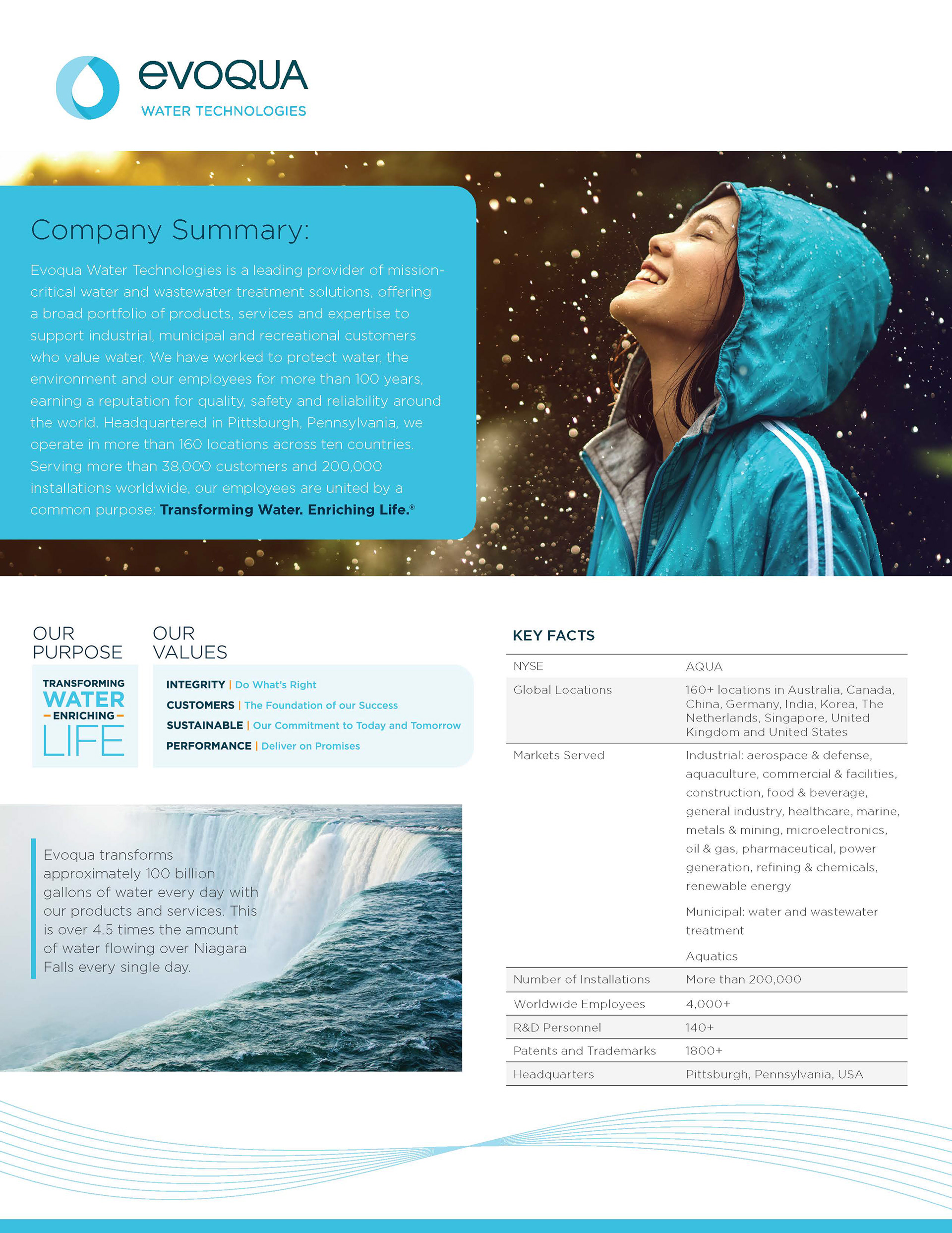 At a Glance Corporate Overview, Evoqua Water Technologies